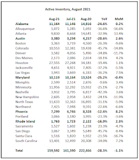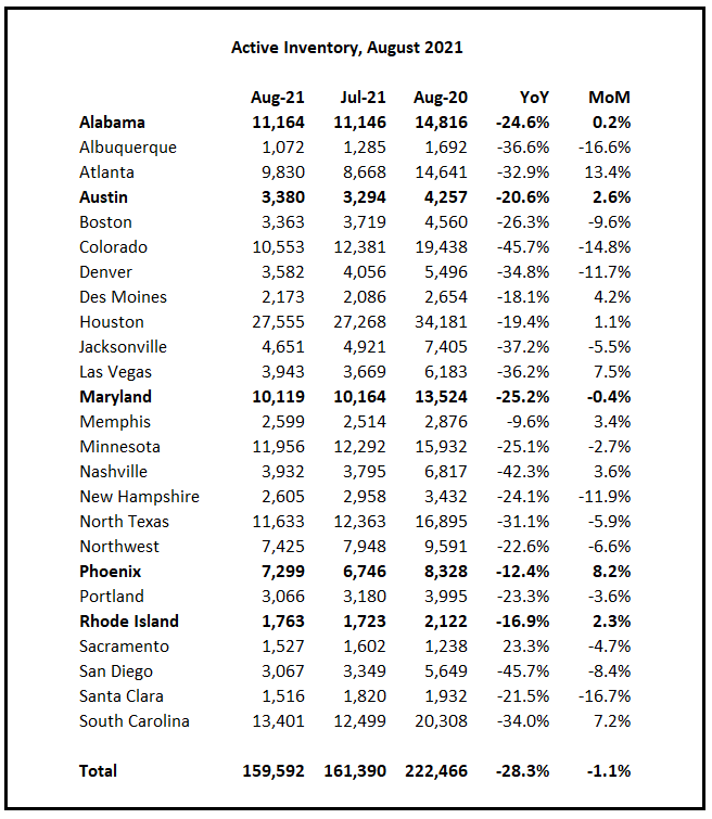 This brings the total to 25 local markets for August. This includes active inventory, new listings and sales added for Alabama, Austin, Maryland, Phoenix, Rhode Island