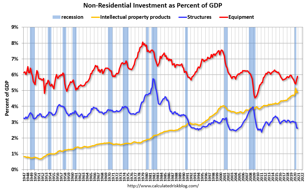 The third graph shows non-residential investment in structures, equipment and “intellectual property products”.