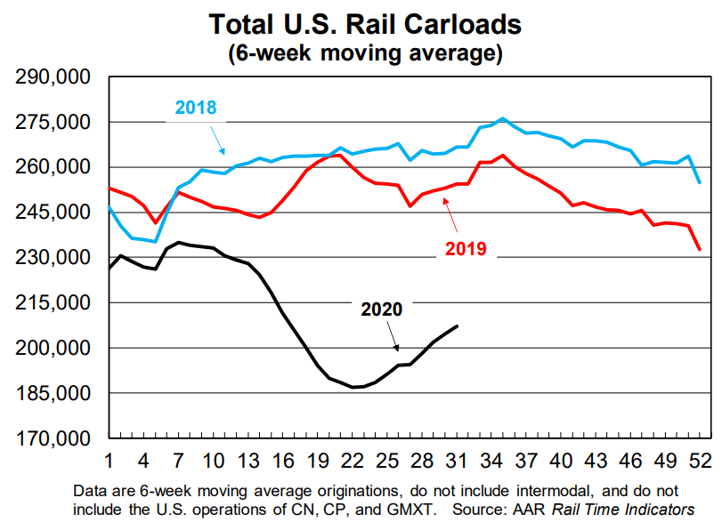 Note that rail traffic was weak prior to the pandemic.