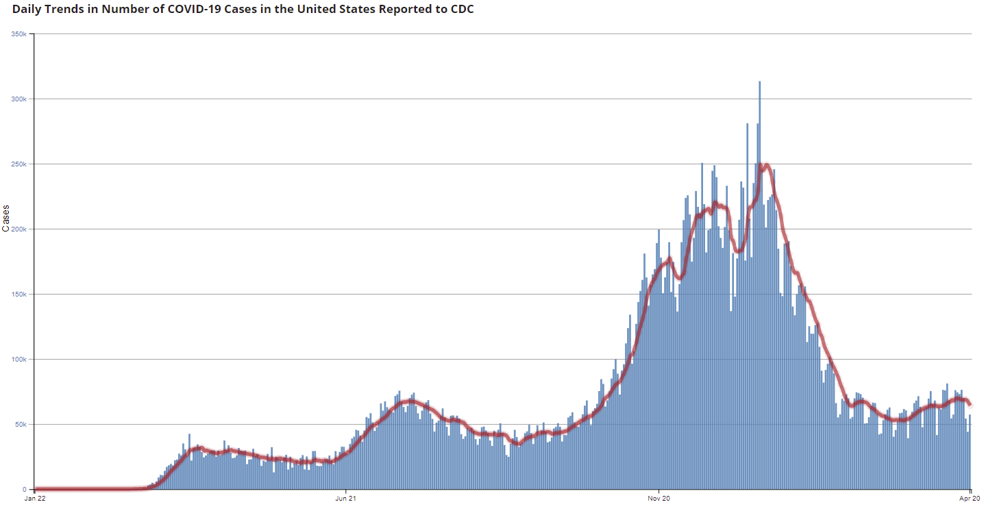 Note: The ups and downs during the Winter surge were related to reporting delays due to the Thanksgiving and Christmas holidays.