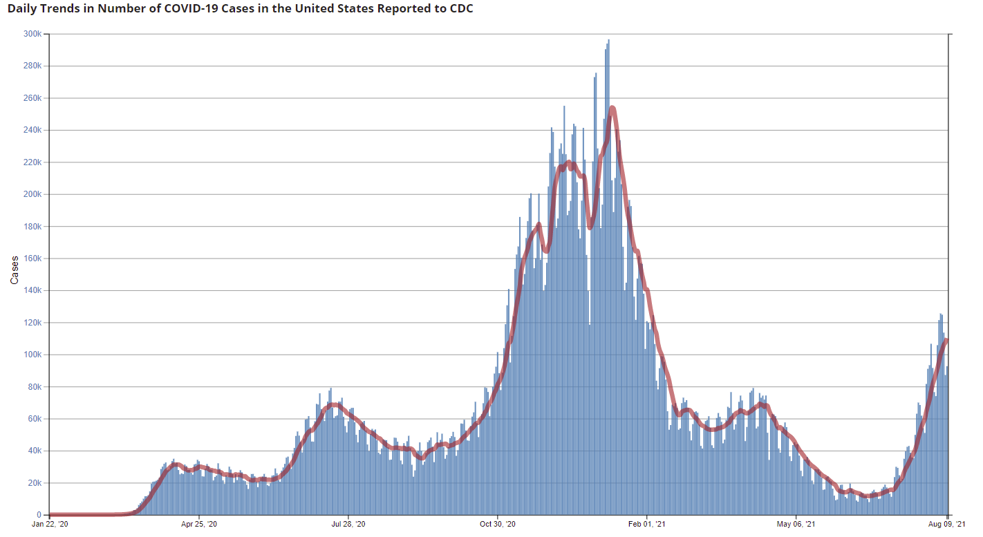 KUDOS to the residents of the 21 states and D.C. that have achieved the 70% goal (percent over 18 with at least one dose): Vermont, Hawaii, Massachusetts, Connecticut, Maine, New Jersey, New Mexico and Rhode Island are at 80%+, Pennsylvania, California, Maryland, Washington, New Hampshire, New York, Illinois, Virginia, Delaware, Minnesota, Oregon, Colorado, Florida and D.C. are all over 70%.