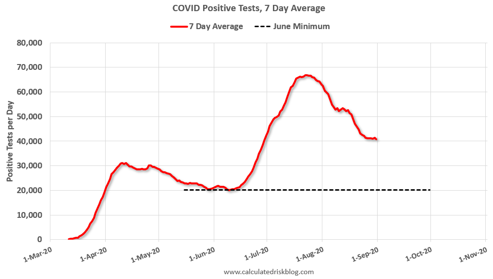 By June, the percent positive had dropped below 5% (lower than today). If people stay vigilant, the number of cases might drop to the June low by the end of September (that would still be a large number of new cases, but progress).