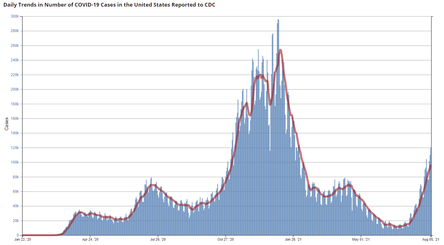 KUDOS to the residents of the 20 states and D.C. that have achieved the 70% goal (percent over 18 with at least one dose): Vermont, Hawaii, Massachusetts, Connecticut, Maine and New Jersey are at 80%+, and New Mexico, Rhode Island, Pennsylvania, California, Maryland, Washington, New Hampshire, New York, Illinois, Virginia, Delaware, Minnesota, Oregon, Colorado, Florida and D.C. are all over 70%.