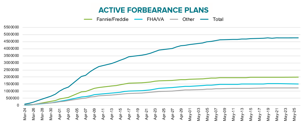 • As of May 26th, the number of active forbearances had begun to flatten, with a net increase of 7,000 plans over the prior week