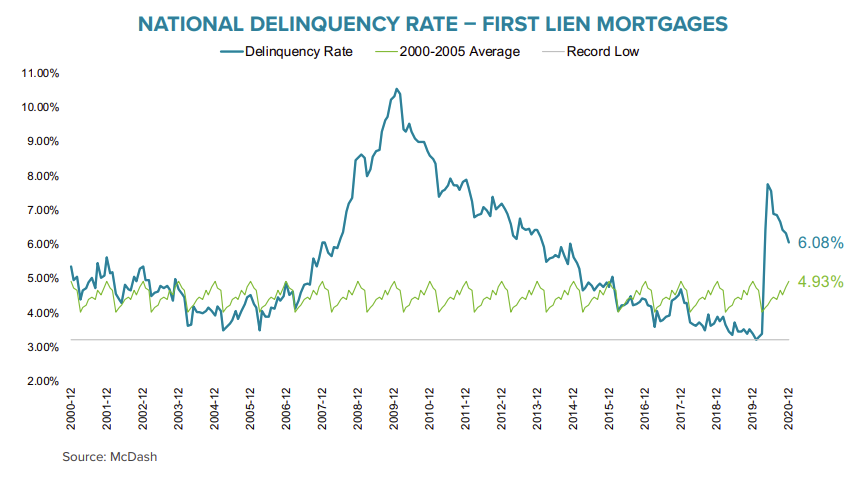“When nearly a quarter of all forbearance plans come to an end on March 31, at the current rate of improvement there would still be approximately 1.5 million more such serious delinquencies than before the pandemic. With that rate of improvement slowing in recent weeks, current trends suggest more than 2.5 million homeowners would still in forbearance at that point. While early in the pandemic roughly half of homeowners in forbearance continued to make their monthly mortgage payments, that number has steadily declined. Today, it’s about 12%, which suggests the people who are taking the full forbearance period afforded to them may well be experiencing prolonged financial distress, and face extended challenges as they return to making payments.”