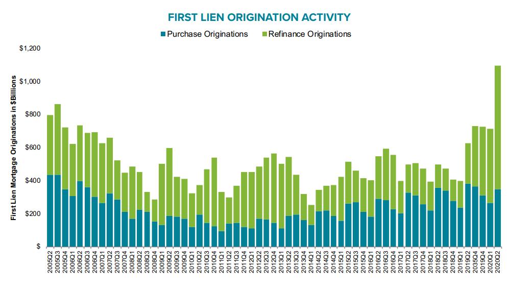 Nearly $1.1T in first lien mortgages were originated in Q2 2020, the largest quarterly origination volume on record since Black Knight began reporting the metric in January 2000