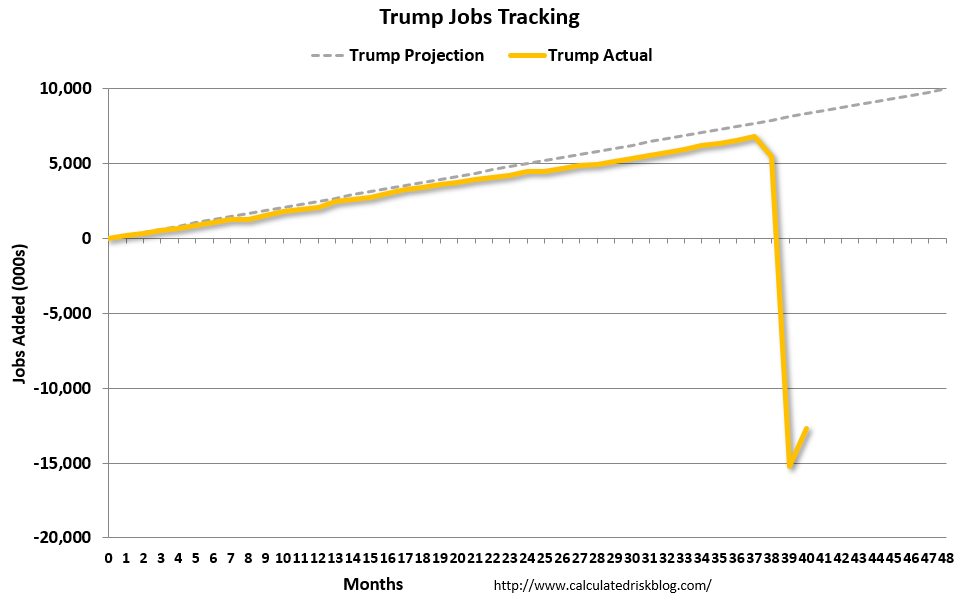 After 40 months of Mr. Trump’s presidency, the economy has lost 12,715,000 jobs, about 21,048,000 behind the projection.
