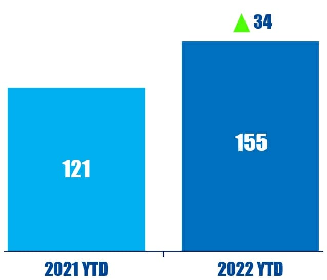 So far this year (as of November 3, 2022), activists have initiated campaigns at 155 Asia-based companies. That is compared to 121 in the same period last year.