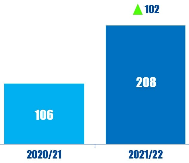 There were 208 social proposals at U.S. companies in the 2021-22 proxy season, almost twice as many as 2020-21 (106). This data point comes from The Proxy Voting Annual Review 2022.