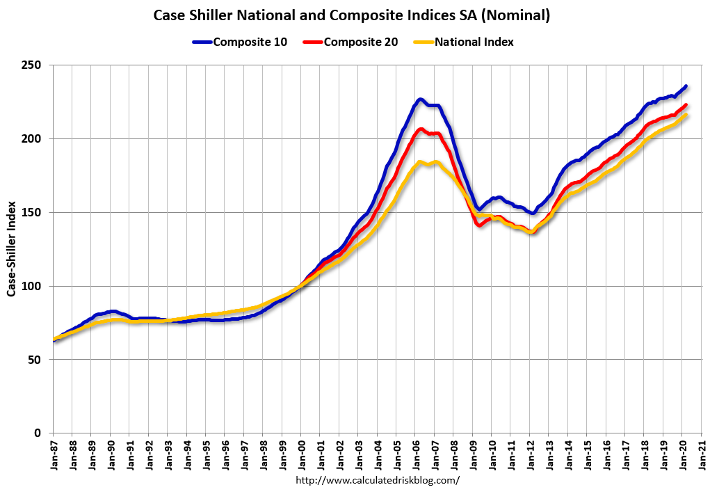The Composite 10 SA is up 3.3% compared to March 2019. The Composite 20 SA is up 3.9% year-over-year.