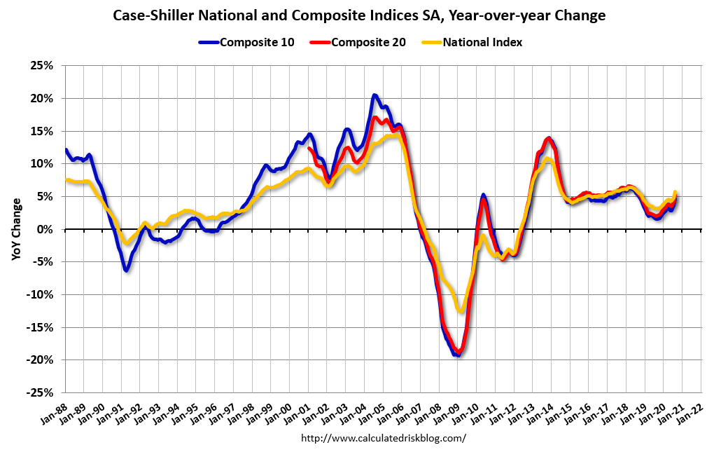 From S&P: S&P CoreLogic Case-Shiller Index Shows Annual Home Price Gains Increased to 5.7% in August