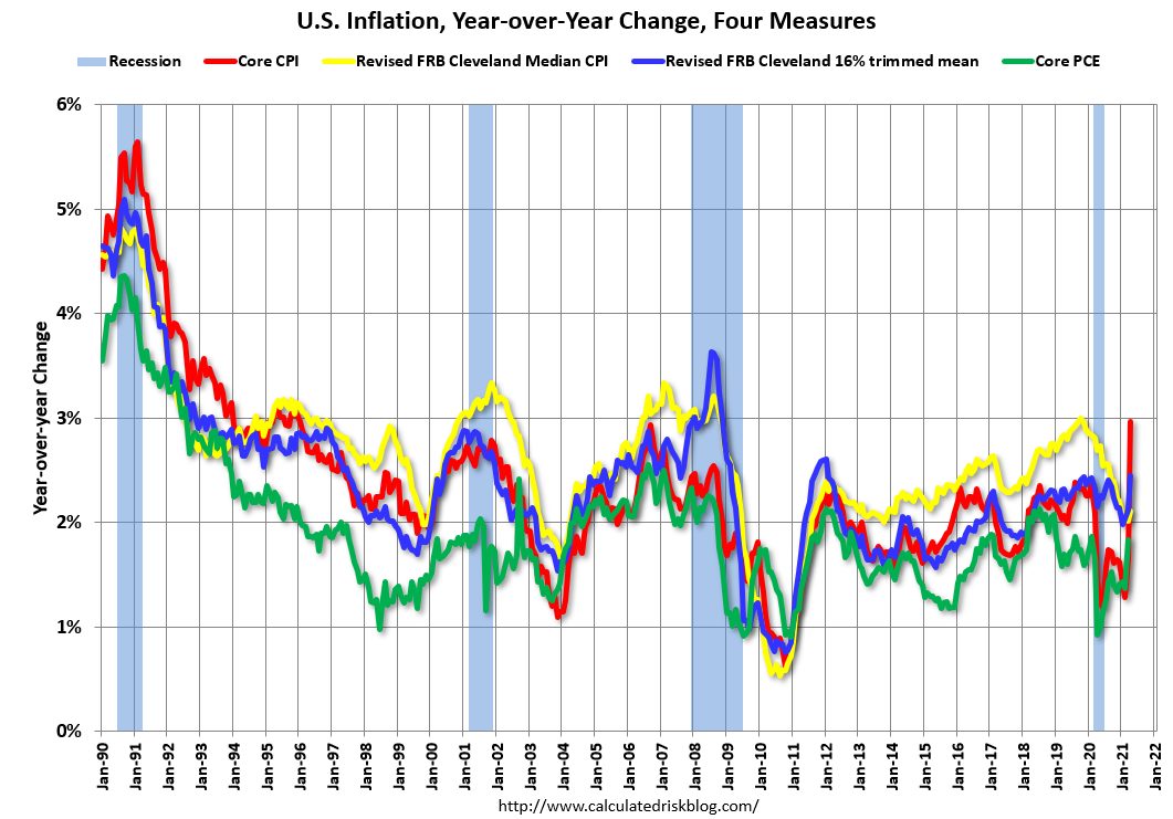 Note: The Cleveland Fed released the median CPI details for April here. Car and truck rental was up 505% annualized! Used cars and trucks were up 215% annualized.