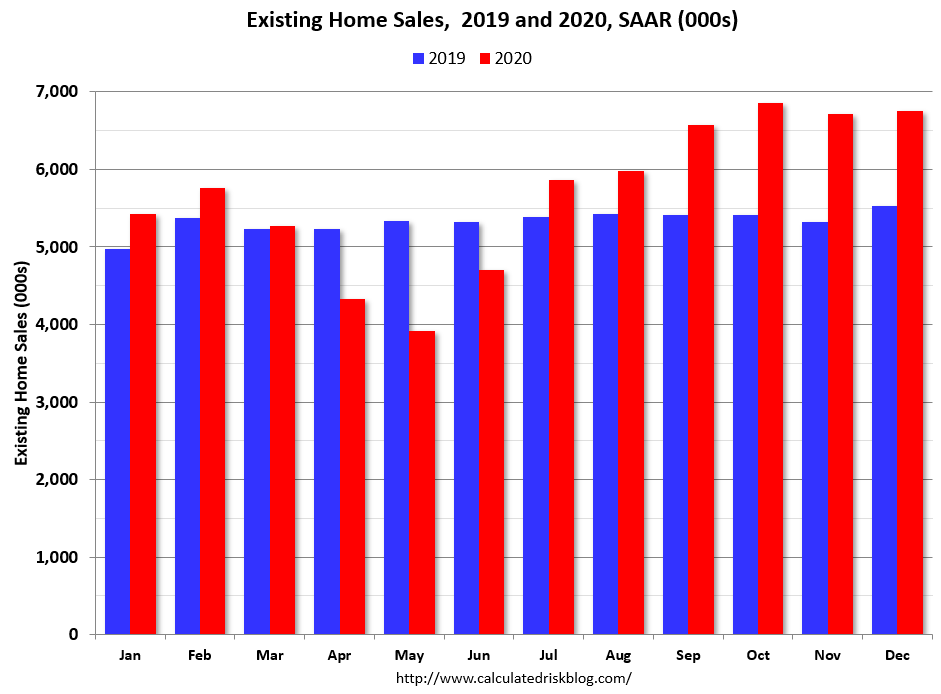 1) This was the highest sales rate for December since 2004, and the 2nd highest sales for December on record. Some of the increase over the last several months was probably related to pent up demand from the shutdowns in March and April. Other reasons include record low mortgage rates, a move away from multi-family rentals, strong second home buying (to escape the high-density cities) and favorable demographics.