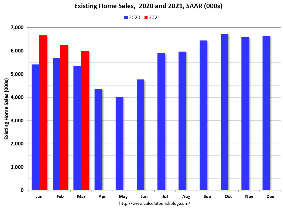 Months-of-supply at 2.1 months is just above the record low of 1.9 months set in December 2020 and January 2021. Inventory will be important to watch in 2021, see: Some thoughts on Housing Inventory