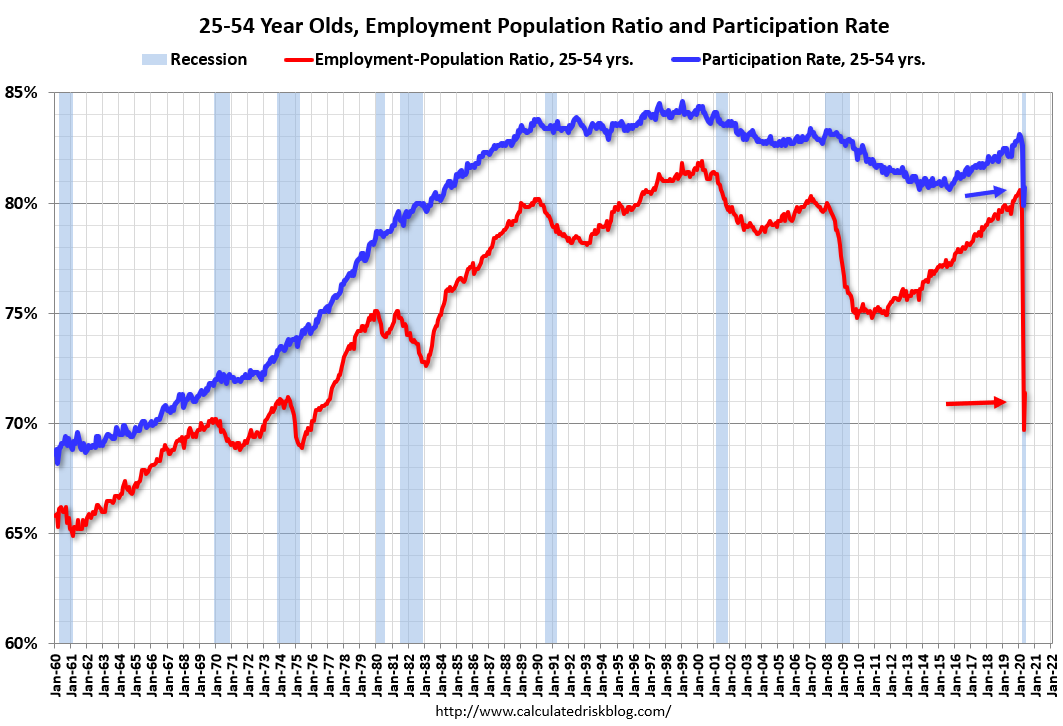 The 25 to 54 participation rate increased in May to 80.7%, and the 25 to 54 employment population ratio increased to 71.4%.