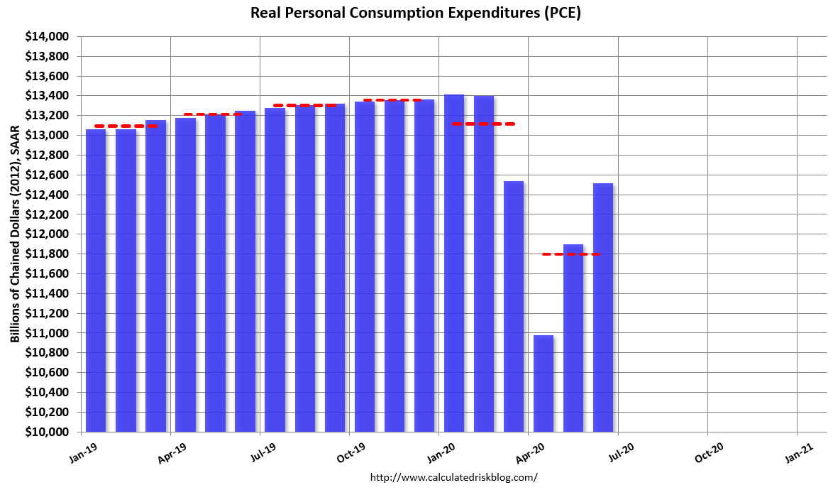 Note the red line for Q2 (the quarterly level of PCE). Even if PCE stayed at the June level in Q3, there would be 27% increase in Q3!