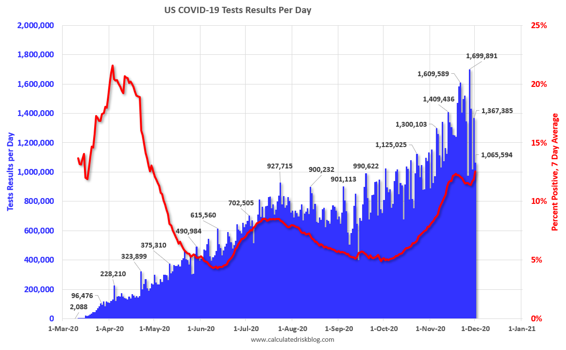 Almost 2,500 US deaths have been reported so far in December (one day!). See the graph on US Daily Deaths here.