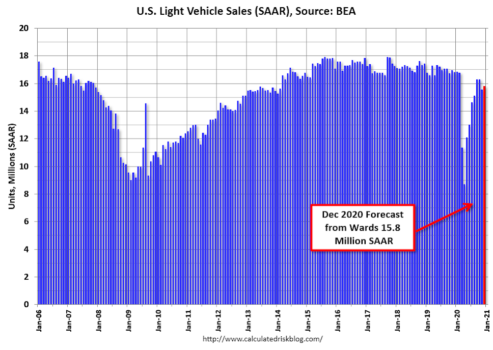The Wards forecast of 15.8 million SAAR, would be up about 2% from November.