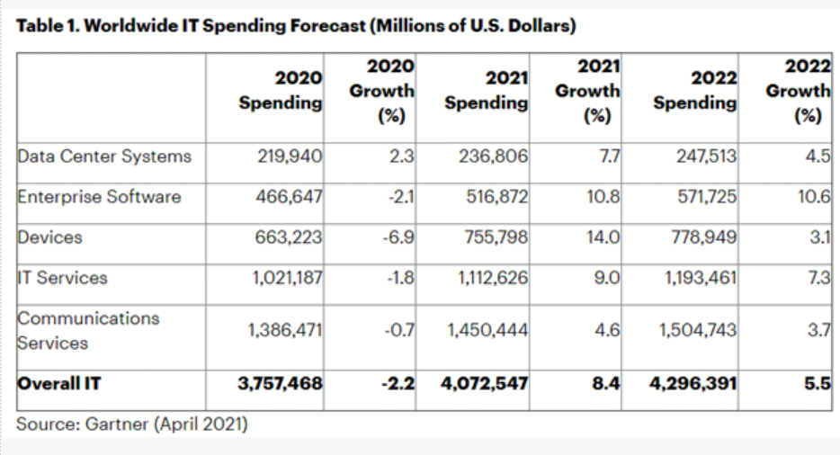But it’s happening now, in 2021, with little fanfare, as worldwide IT spending is expected to jump by 8.4% this year, to exceed $4 trillion for the first time on record, as mature companies with reshaped leaner and meaner business models, sporting reasonable P/E ratios, will likely continue to excel and outperform.