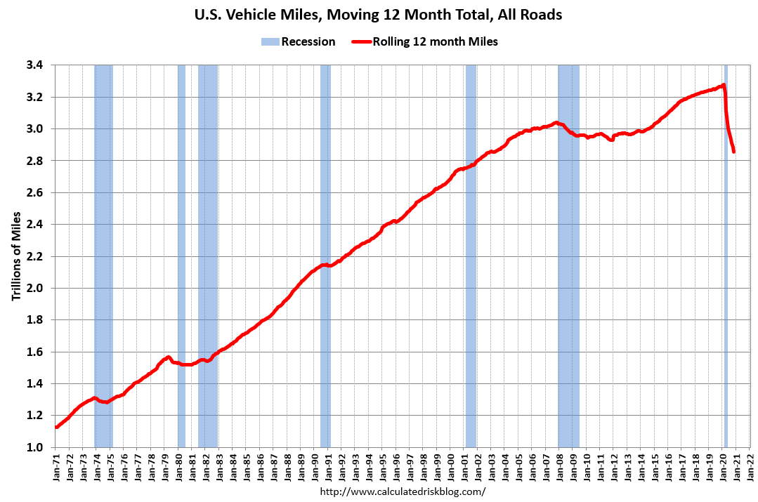 DOT: Vehicle Miles Driven decreased 10.3% year-over-year in November