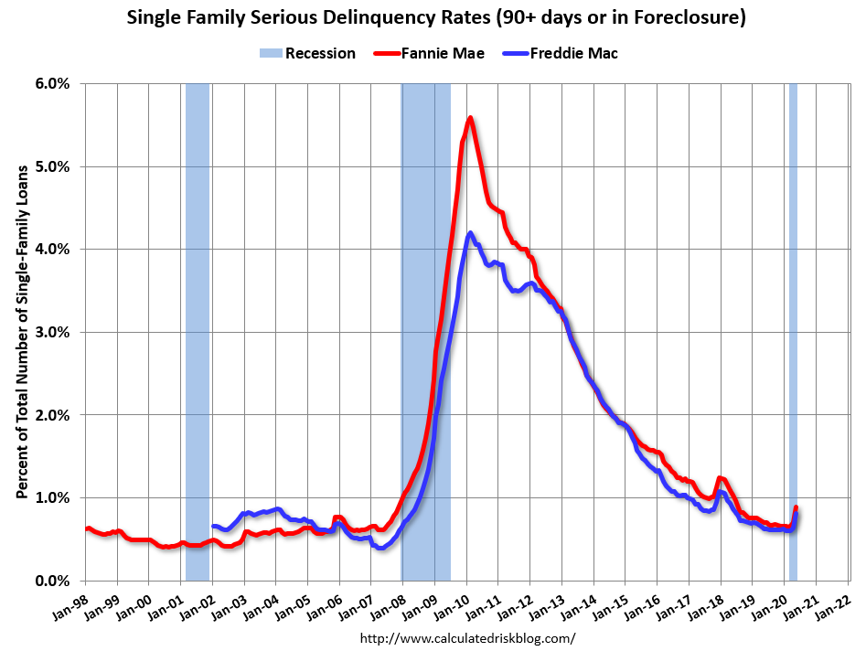This is very different from the increase in delinquencies following the housing bubble. Lending standards have been fairly solid over the last decade, and most of these homeowners have equity in their homes – and they will be able to restructure their loans once they are employed.