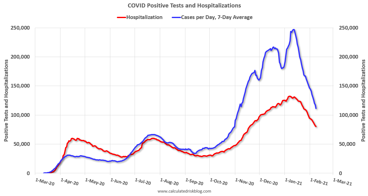 Both cases and hospitalizations have peaked, but are declining from a very high level.