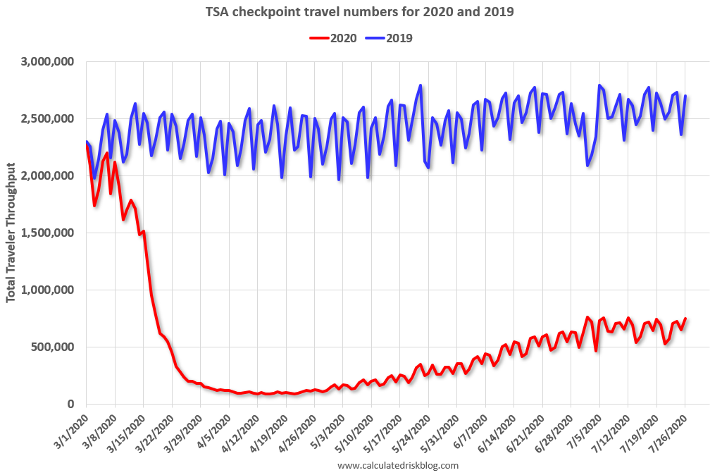 On July 26th there were 751,205 travelers compared to 2,700,723 a year ago.