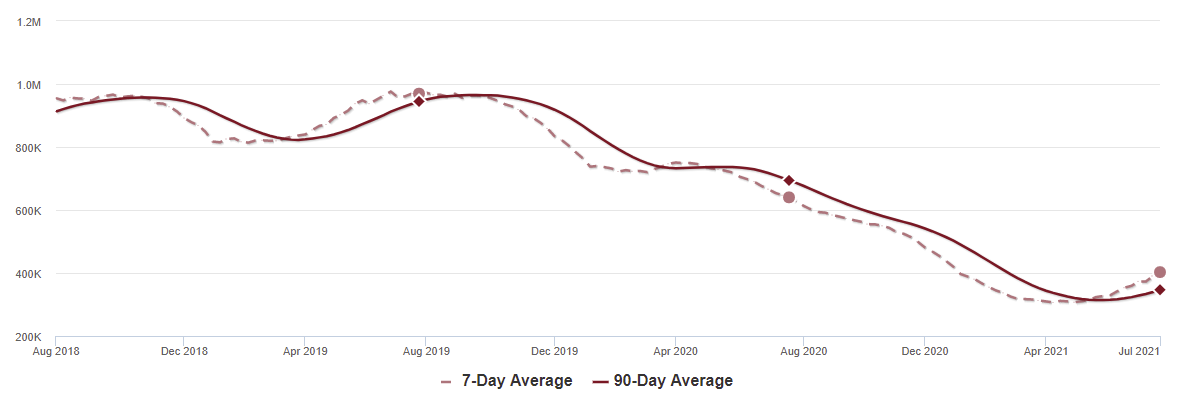 Altos Research has also seen a significant pickup in price decreases – almost back to the level of a year ago – although still well below a normal rate for July.