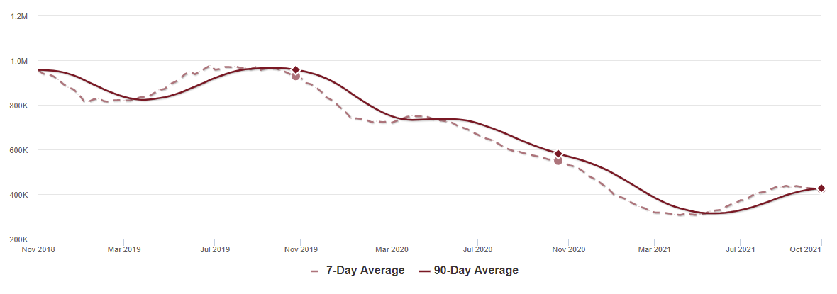 Housing Inventory Oct 25th Update: Inventory Down Slightly Week-over-week