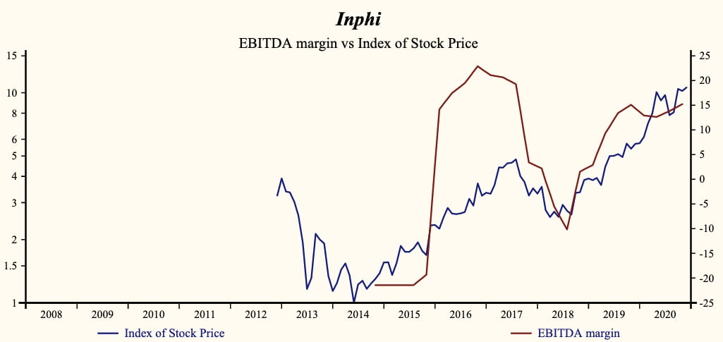 Inphi Corporation (NASDAQ:IPHI) has been an unprofitable company with frequently low cash return on total capital of 7.3% on average over the past 6 years. Over the long term the shares of Inphi Corporation have advanced by 753% relative to the broad market index.
