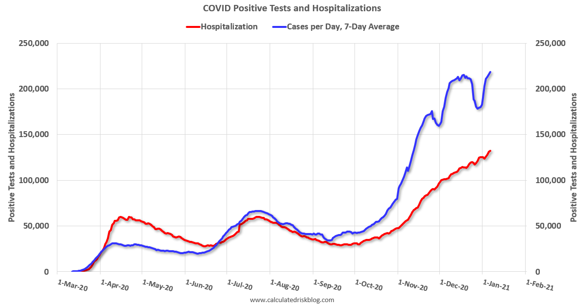 Note: It will take a week or so for the data to adjust for lack of reporting during the holidays. The week-over-week growth in positive cases slowed prior to the holidays.  Hopefully that continues after the holidays.