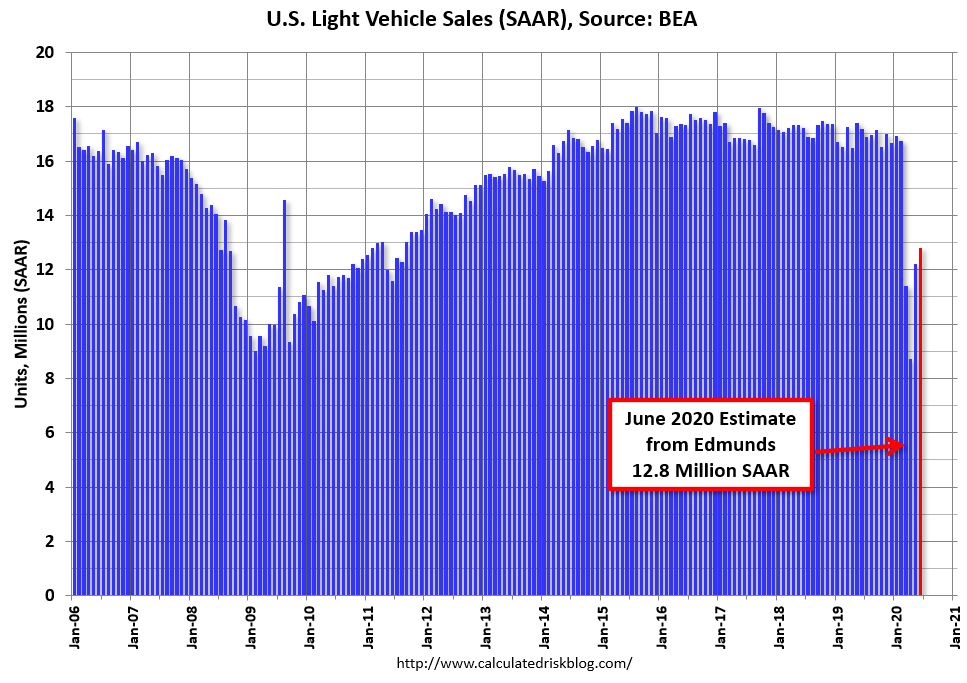 Note that the low in April of 8.73 million SAAR was lower than the lowest sales rate during the great recession of 9.02 million SAAR in February 2009.