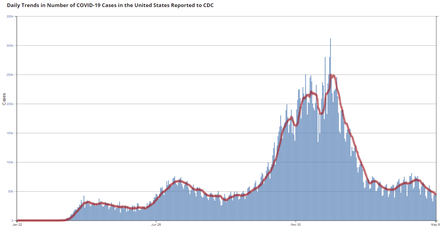 Note: The ups and downs during the Winter surge were related to reporting delays due to the Thanksgiving and Christmas holidays.