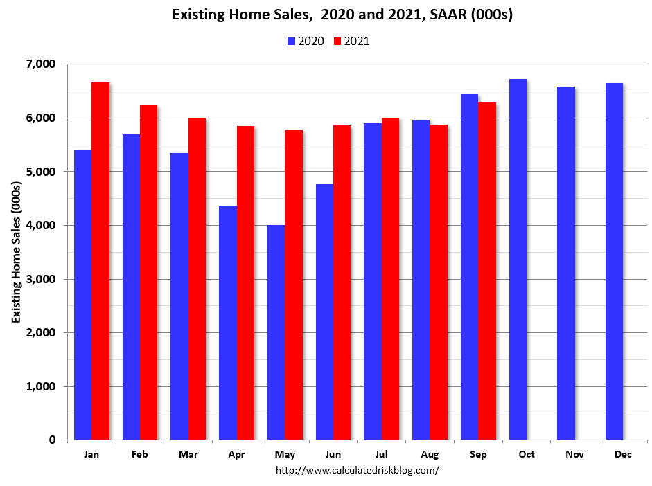 Median prices are distorted by the mix (repeat sales indexes like Case-Shiller and FHFA are probably better for measuring prices), but this is the fourth consecutive month with a deceleration in the median price. The NAR reported median prices were up 23.6% YoY in May, 23.4% in June, 17.8% in July, 14.9% in August and 13.3% in September. This deceleration will probably show up in Case-Shiller and the FHFA indexes very soon.