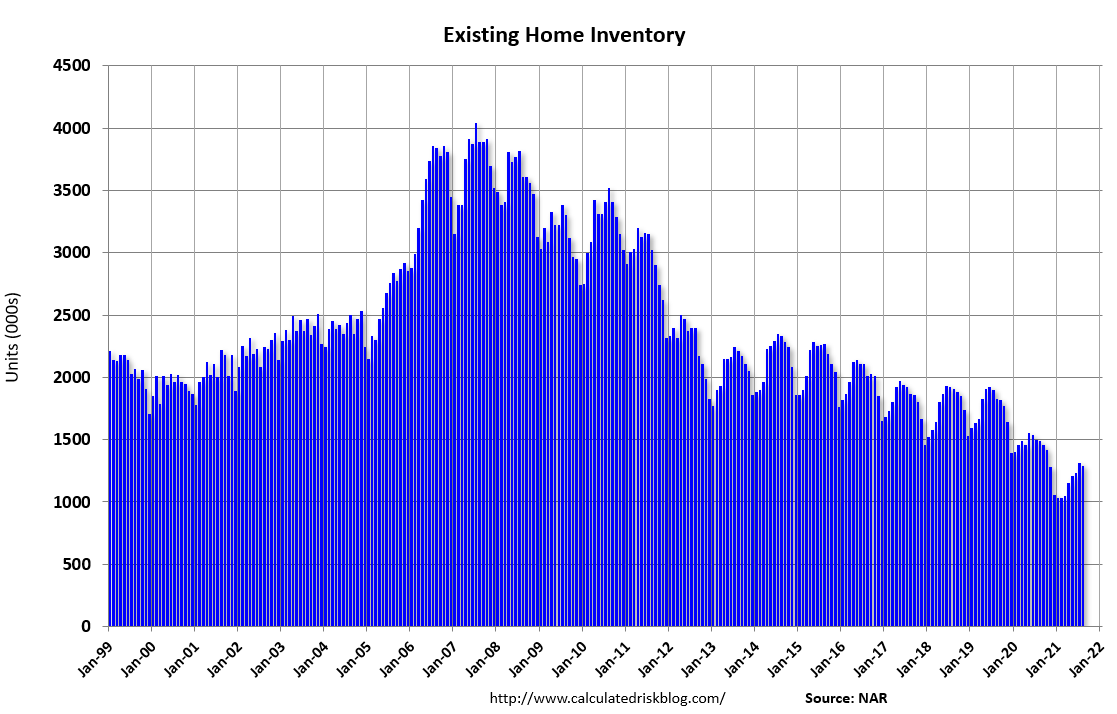 According to the NAR, inventory decreased to 1.29 million in August from 1.31 million in July.