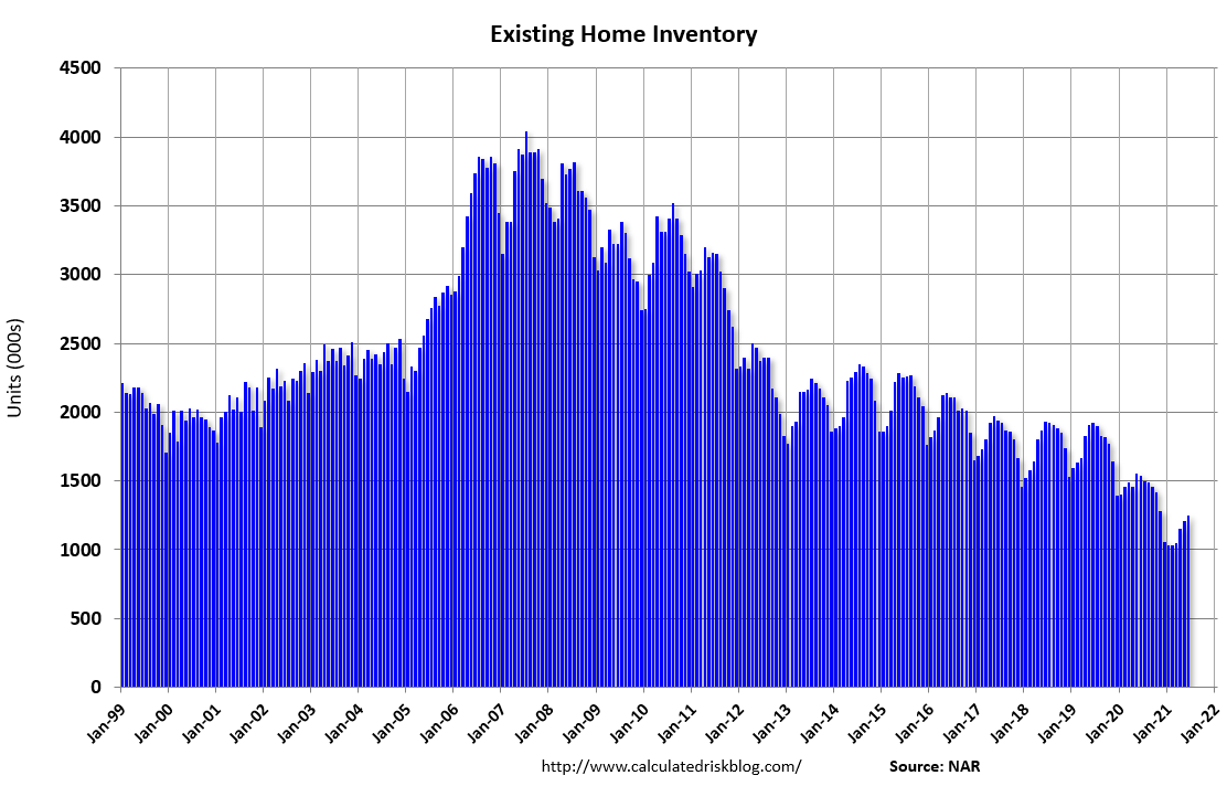 According to the NAR, inventory increased to 1.25 million in June from 1.21 million in May.