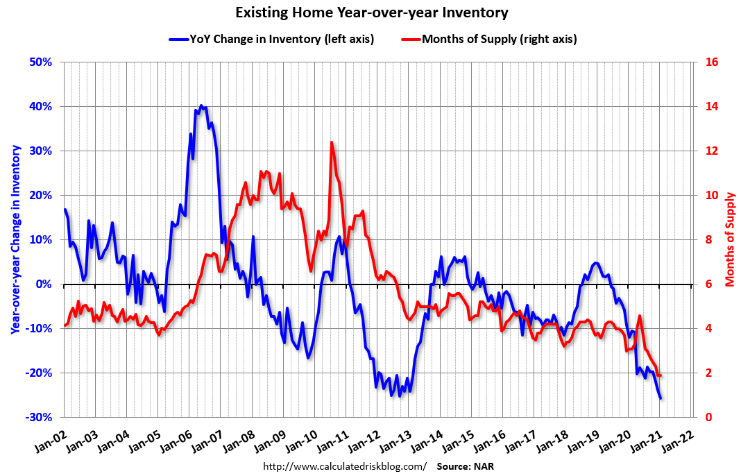 Inventory was down 25.7% year-over-year in January compared to January 2020.