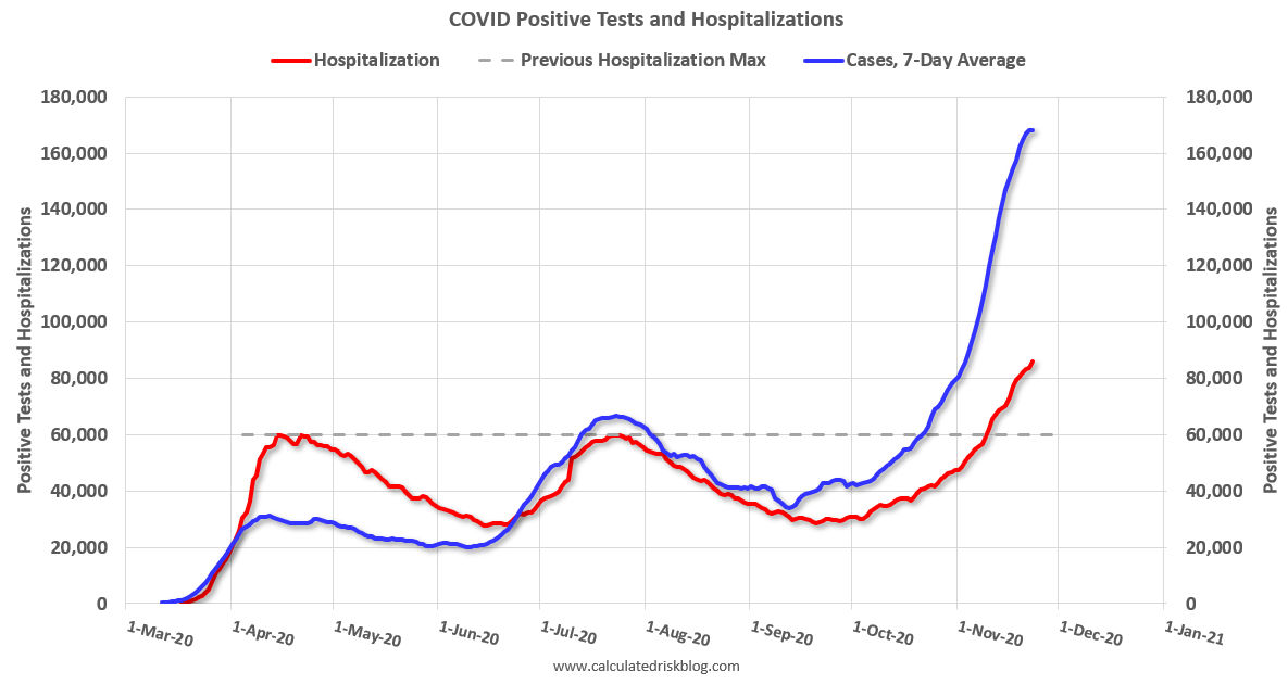 Over 26,500 US deaths have been reported so far in November. See the graph on US Daily Deaths here.