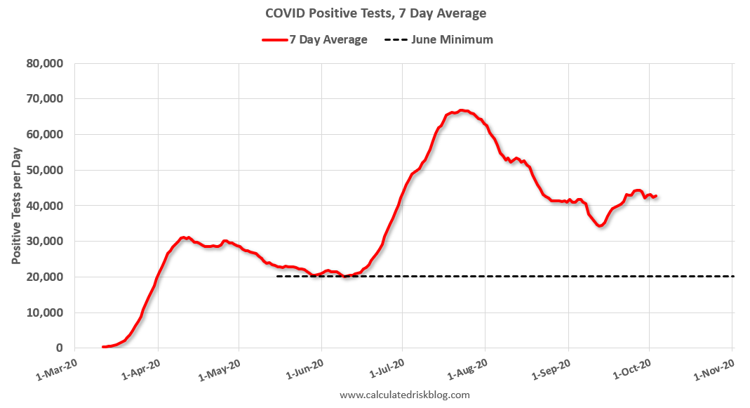 Over 2,400 Americans deaths from COVID have been reported in October. See the graph on US Daily Deaths here.