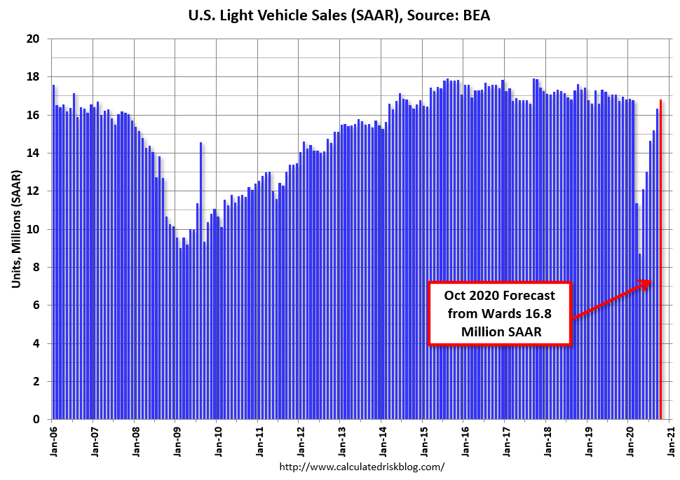The Wards forecast of 16.8 million SAAR, would be up about 3% from September.