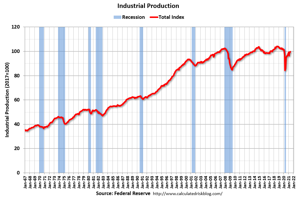 The consensus is for a 0.7% increase in Industrial Production, and for Capacity Utilization to increase to 75.6%.