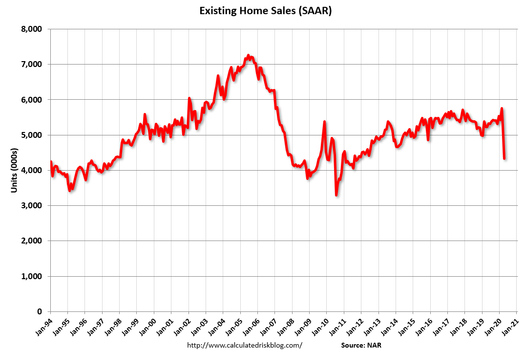 Existing Home Sales10:00 AM: Existing Home Sales for May from the National Association of Realtors (NAR). The consensus is for 4.10 million SAAR, down from 4.33 million.