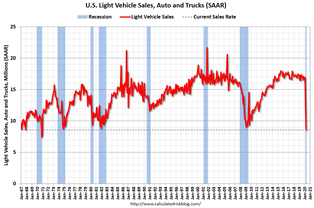 Employment Recessions, Scariest Job Chart8:30 AM: Employment Report for May.   The consensus is for 8,250,000 jobs lost, and for the unemployment rate to increase to 19.7%.