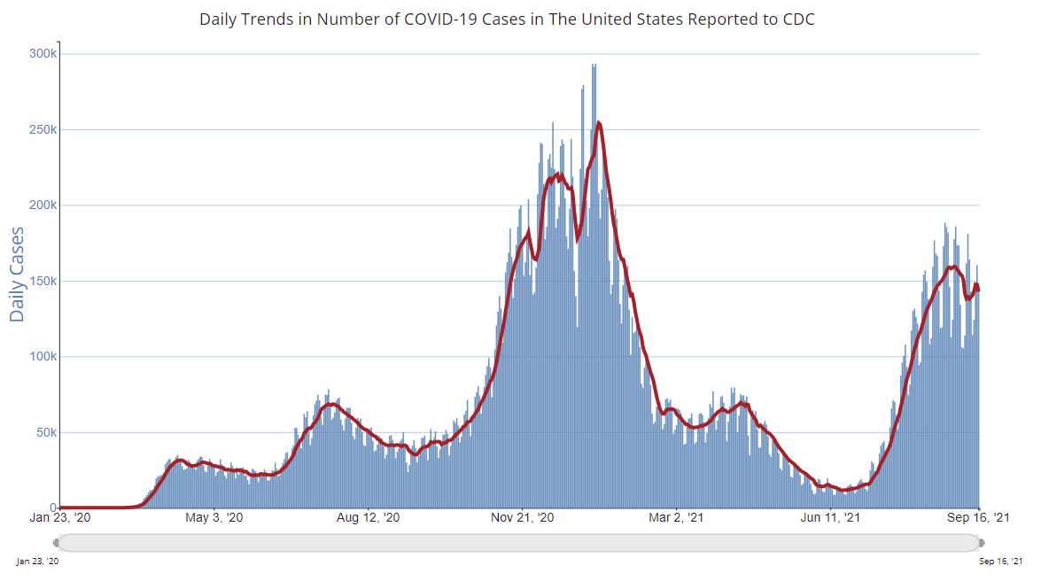 According to the CDC, on Vaccinations. Total doses administered: 383,994,877, as of a week ago 378,569,717. Average doses last week: 0.78 million per day.