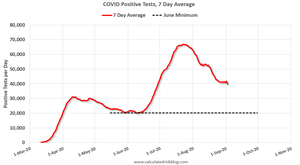 By June, the percent positive had dropped below 5% (lower than today).  If people stay vigilant, the number of cases might drop to the June low by the end of September (that would still be a large number of new cases, but progress).