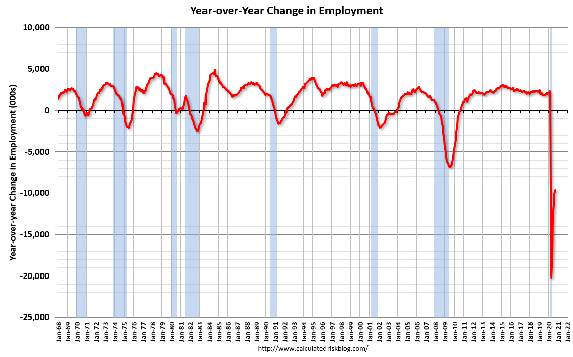 In September, the year-over-year change was negative 9.65 million jobs.