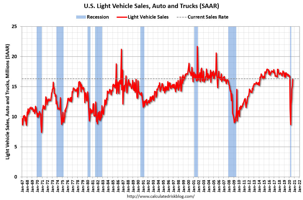 The second graph shows light vehicle sales since the BEA started keeping data in 1967.