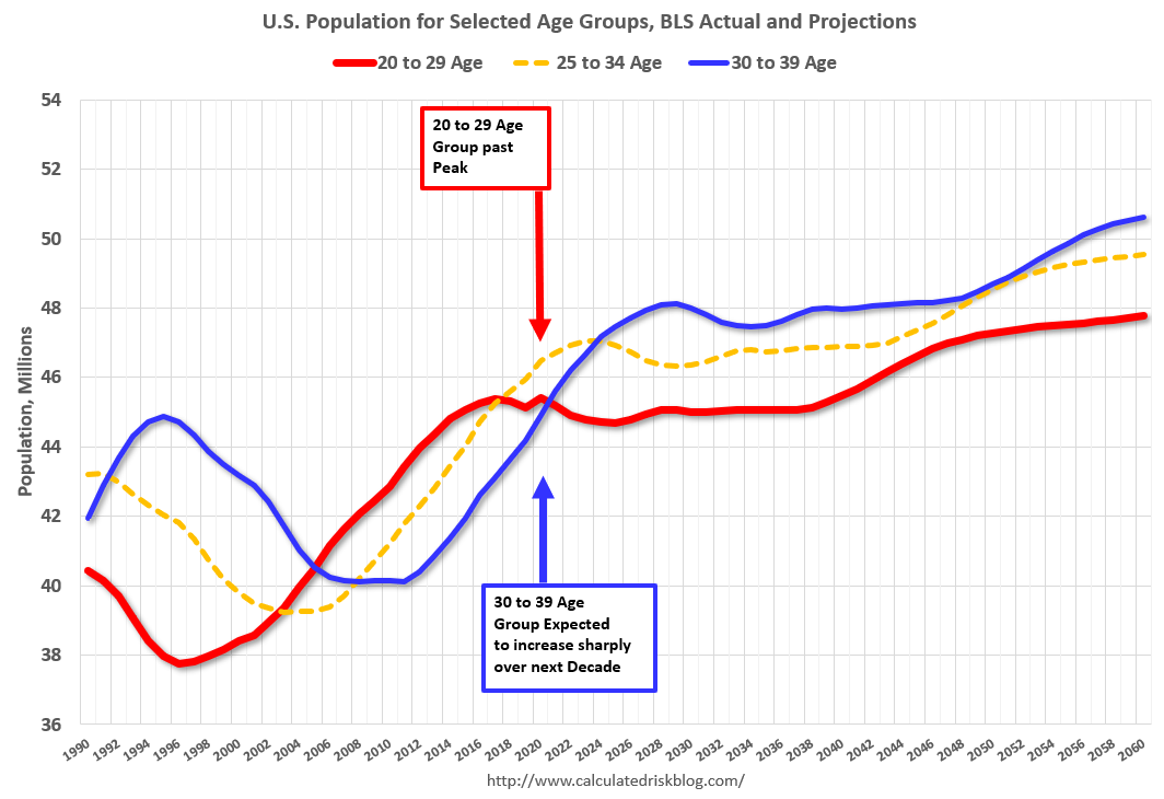 This demographics is now positive for home buying, and this is a key reason I expected the increase in single family housing starts in 2020.