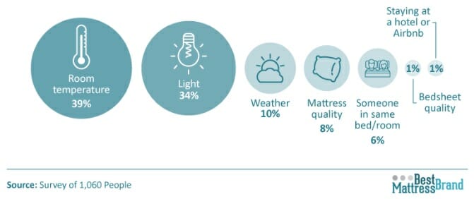40% of men and women said that the one factor that influences how long they stay in bed is the temperature of the room, followed by 34% who named lighting as the reason, weather (10%) and the mattress quality (8%).