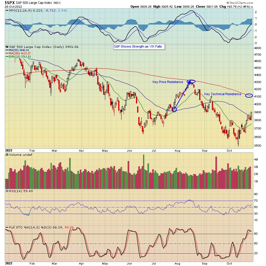 The next key event will be the Federal Reserve Interest Rate announcement scheduled for next Wednesday. November 2. Everyone is expecting an increase of 75 basis points, with another .75 in the following meeting. The market reaction to the Fed announcement might give us some clues as to where the market is headed in the near term. My bet is that once the announcement is out of the way, the market will be free to move higher into year-end. In the meantime, you are invited to join Tom Bowley, who will be conducting a FREE webinar next Saturday, November 5 that will focus on “Market Manipulation”. You will be amazed at what goes on behind the scenes that puts retail traders at a distinct disadvantage. We’re going to have a full house so if you want to learn more and save a seat, just click here.